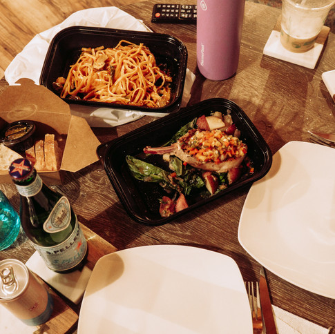 Once we grabbed our food, we headed back to our home base, watching the moon rise above the trees. When we got back to our cabin we changed into our loungewear and PJs, and began our cozy night in.