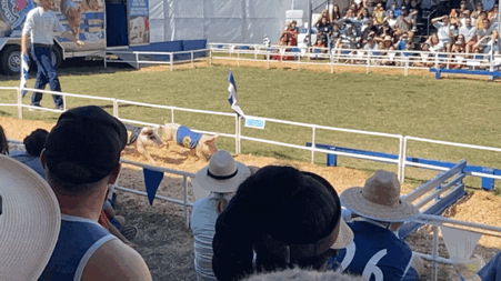 We were lucky to find some seats in the shade - normally the arena fills up very quickly. The guys who run the show are really punny and always elicit belly laughs in the crowd. They started their spiel and before we knew it, we were oohing and awwing at the cute pigs and laughing at all of the puns in between. My regular readers may know I am a connoisseur of 'wholesome fun,' and pig races are right up my alley.