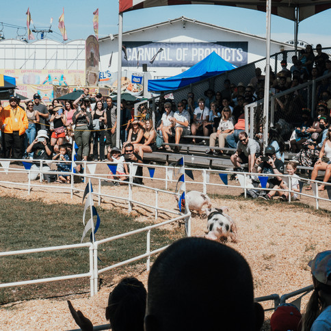 When Mariah arrived, she was just in time for one of my favorite OC Fair past times: Alaskan Pig Races! Yes, you read correctly. Pig races. This may sound weird to non-locals, but what can I say? Cute pigs racing and jumping over hurdles is a thing.
